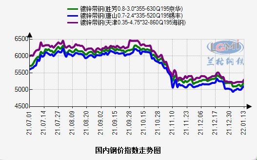 - 1月13日华北镀锌带钢弱势运行 价格走高下游观望情绪渐浓2022/1/13
