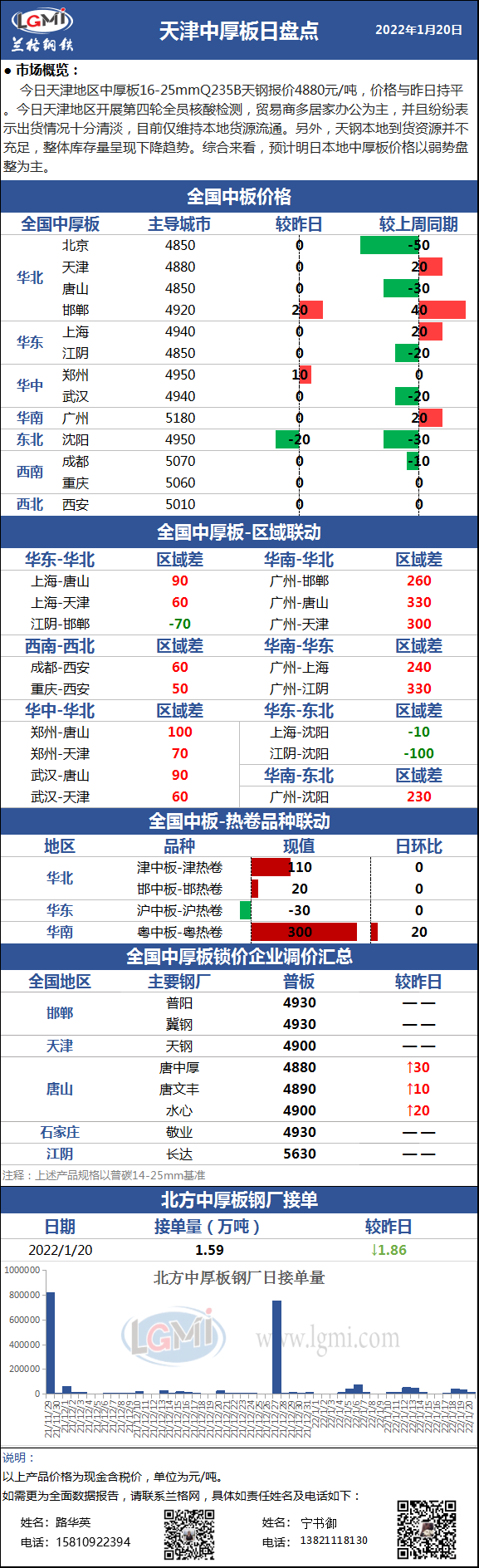 1月20日天津中厚板出货十分清淡 目前仅维持本地货源流通