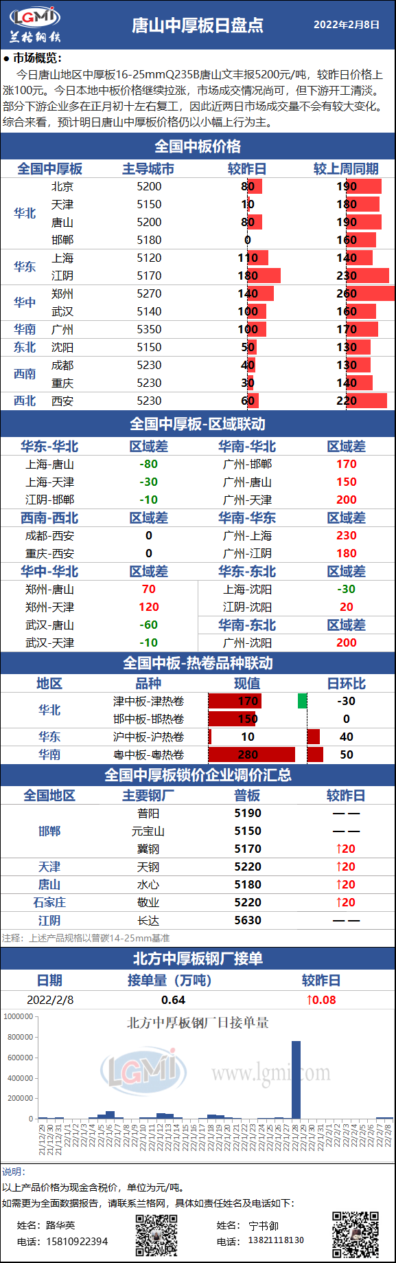2月8日唐山中厚板价格继续拉涨 成交尚可