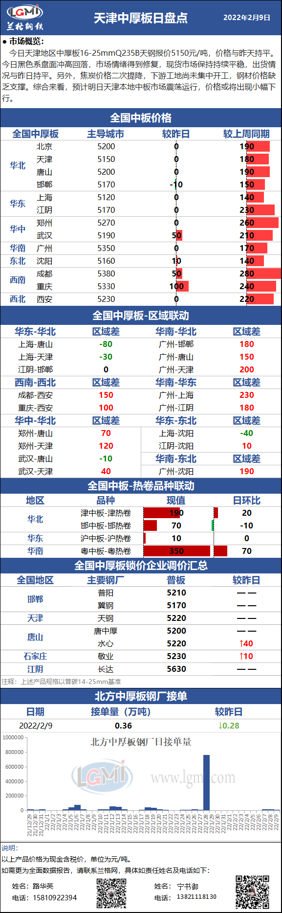 2月9日天津中厚板价格暂稳 出货情况与昨日持平