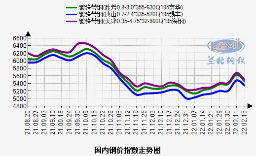 - 2月15日华北镀锌带钢价格持续下行 市场交投显清淡2022/2/15