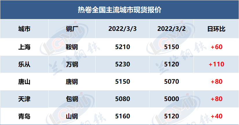 快讯:3月3日,热卷主流地区市场价格