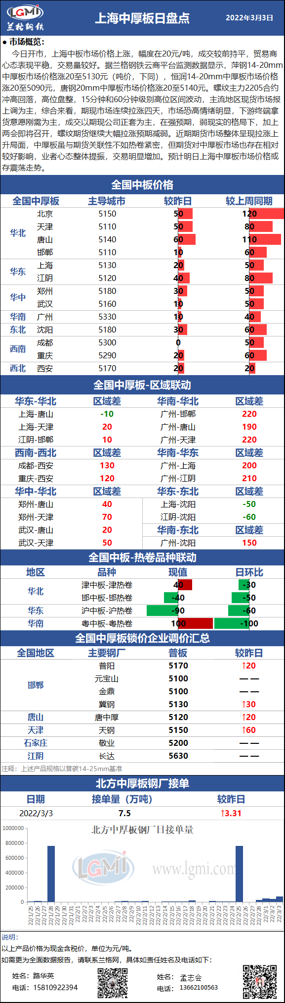 - 兰格中厚板日盘点(3.3):市场价格高位上涨 各地刚需持续释放 终端市场入市抢购2022/3/3