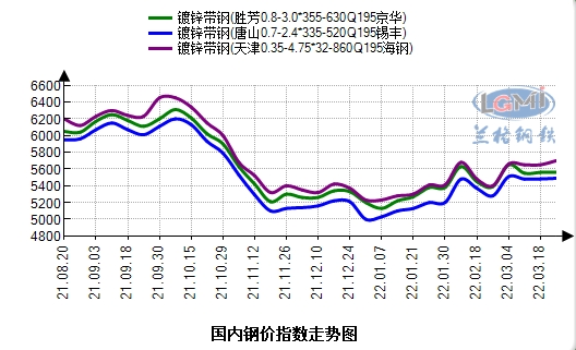 - 今日华北镀锌带钢小幅上涨 钢厂复产供应增量明显2022/3/18