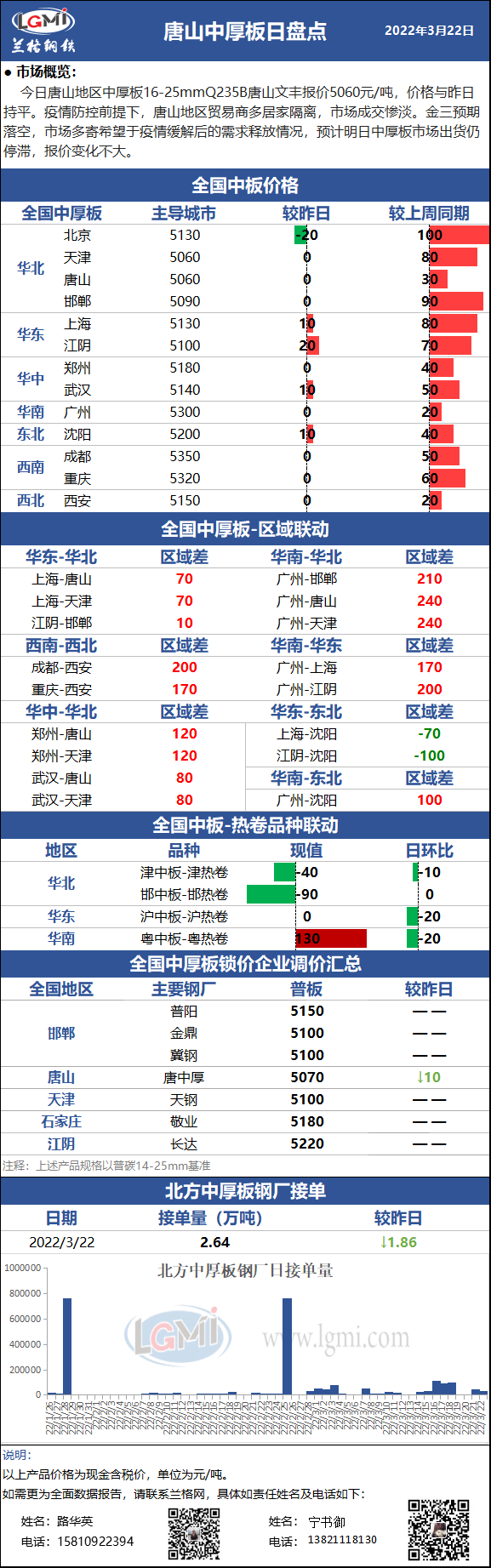 - 唐山中厚板市场出货停滞 市场成交惨淡2022/3/22
