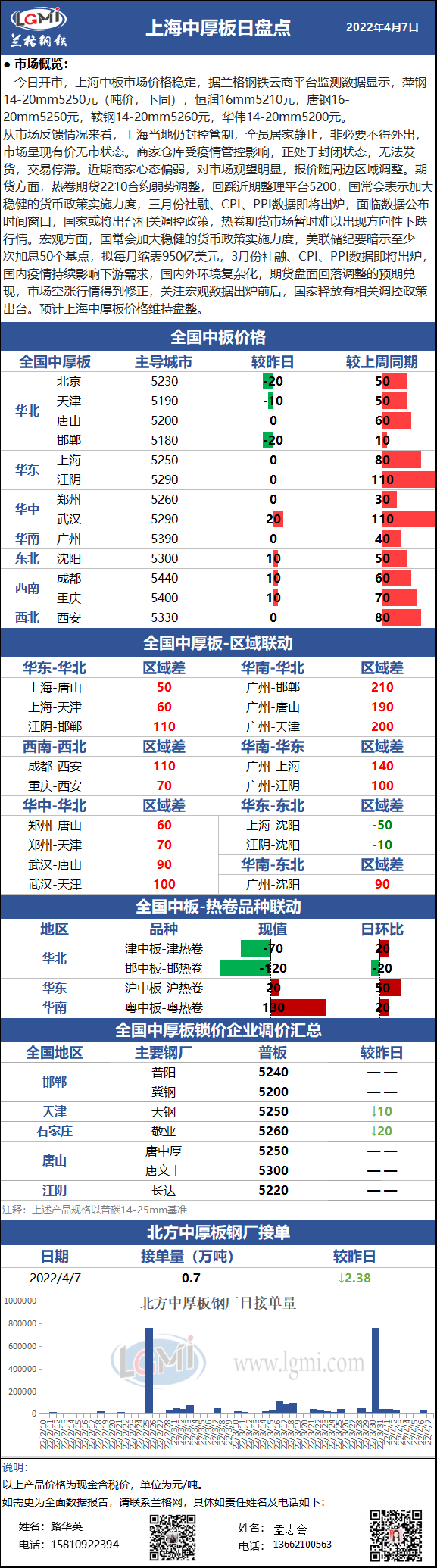 - 兰格中厚板日盘点:现货报价涨跌互现 下游观望情绪加重2022/4/7