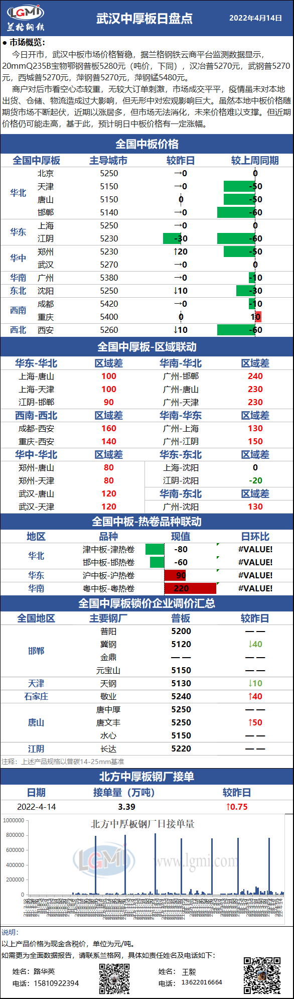- 武汉中板价格稳 市场成交平平2022/4/14