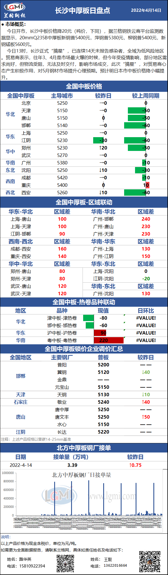 - 长沙中板价格小幅下降 今日“摘星”后市可期2022/4/14