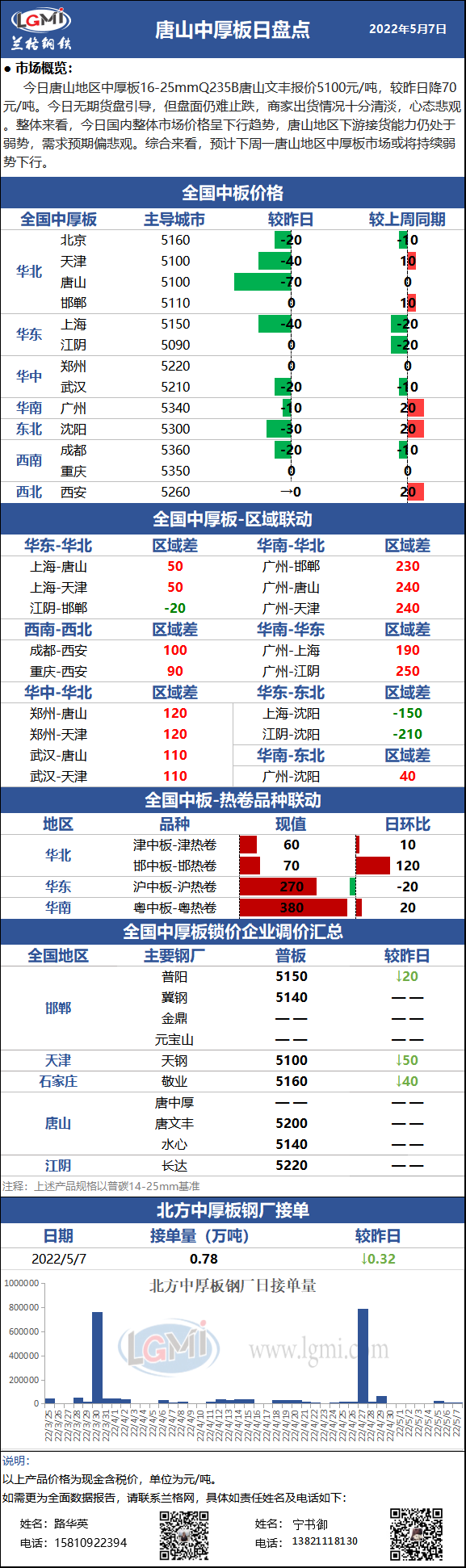 - 唐山中厚板价格下行 需求预期偏悲观2022/5/7
