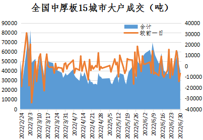 - 6月30日全国15个重点城市中厚板样本大户出货量2022/6/30