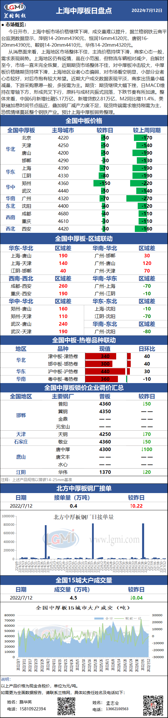 - 兰格中厚板日盘点:市场价格持续下行 成交明显减弱2022/7/12