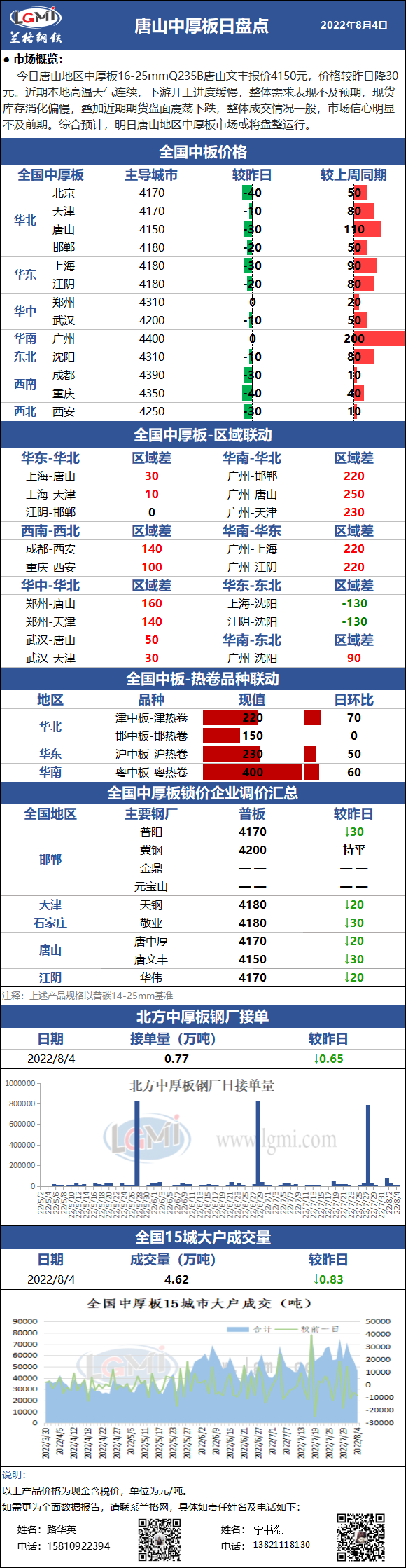唐山中厚板库存消化偏慢 整体成交表现一般