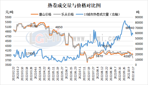 据兰格钢铁云商平台监测数据显示,10月17日全国16个重点城市热轧板卷大户日出货量约为57610吨,较上一交易日下降2500吨,其中北方区域唐山热轧板卷大户出货量约为5810吨,较上一交易日减少450吨左右,南方区域乐从热轧板卷大户出货量约为9180吨,较上一交易日下降70吨。期货盘面延续跌势,现货市场延续下行,下游业者入市按需采购,市场成交量有所下降。