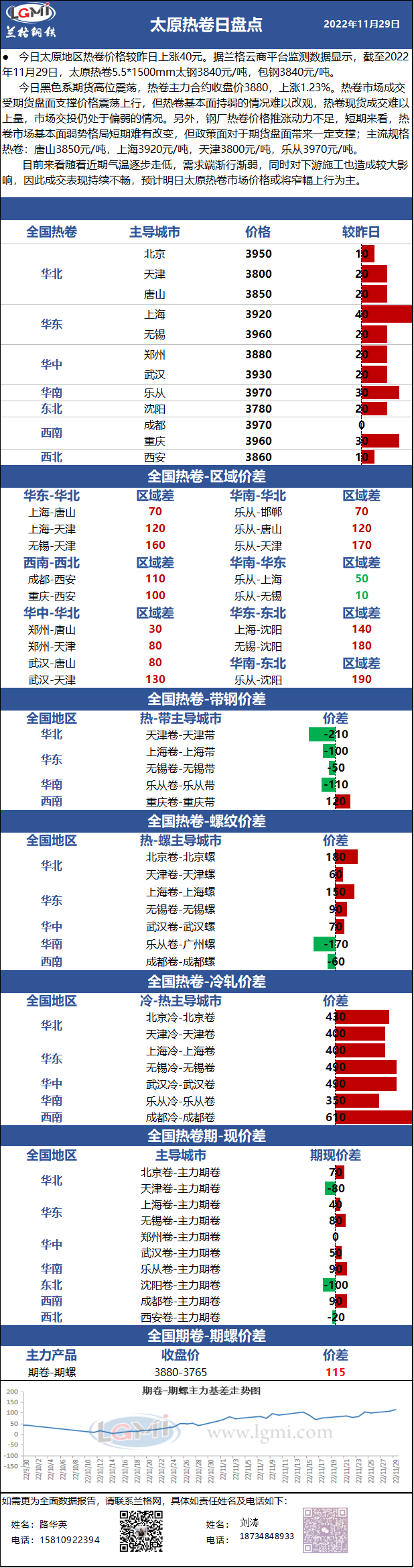 - 太原热卷价格上涨 明日或将窄幅上行2022/11/29