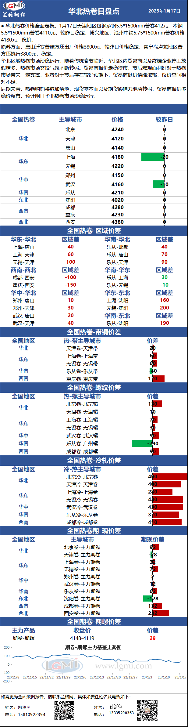 - 1月17日唐山东华建筑钢材出厂价格平稳2023/1/17