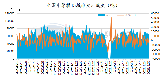 3月31日全国15个重点城市中厚板样本大户出货量