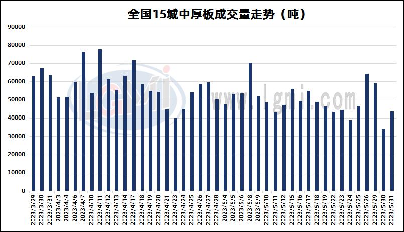 据兰格钢铁云商平台监测数据显示,5月31日全国15个重点城市中厚板大户日出货量约为43600吨,较上个成交日增加9530吨,其中北方区域邯郸中厚板大户出货量约9450吨,较上个成交日增加2100吨,南方区域江阴中厚板大户出货量为9040吨,较上个成交日增加2560吨;今日发布宏观数据,制造业指数为48.8,环比4月份下降0.4个百分点,虽居于枯荣线之下,但并未超出市场预期,因此市场价格方面并未出现大幅回落。