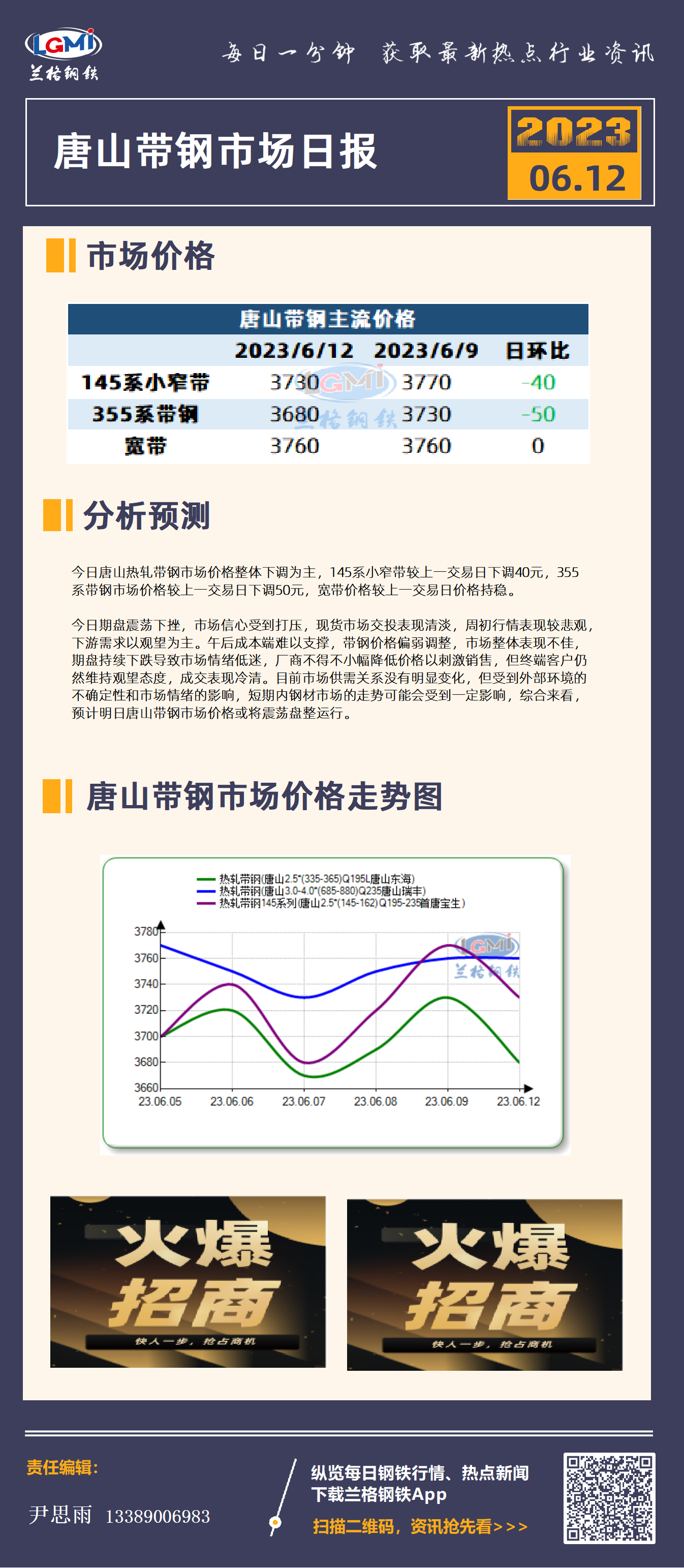 - 6月13日唐山带钢市场日报2023/6/13