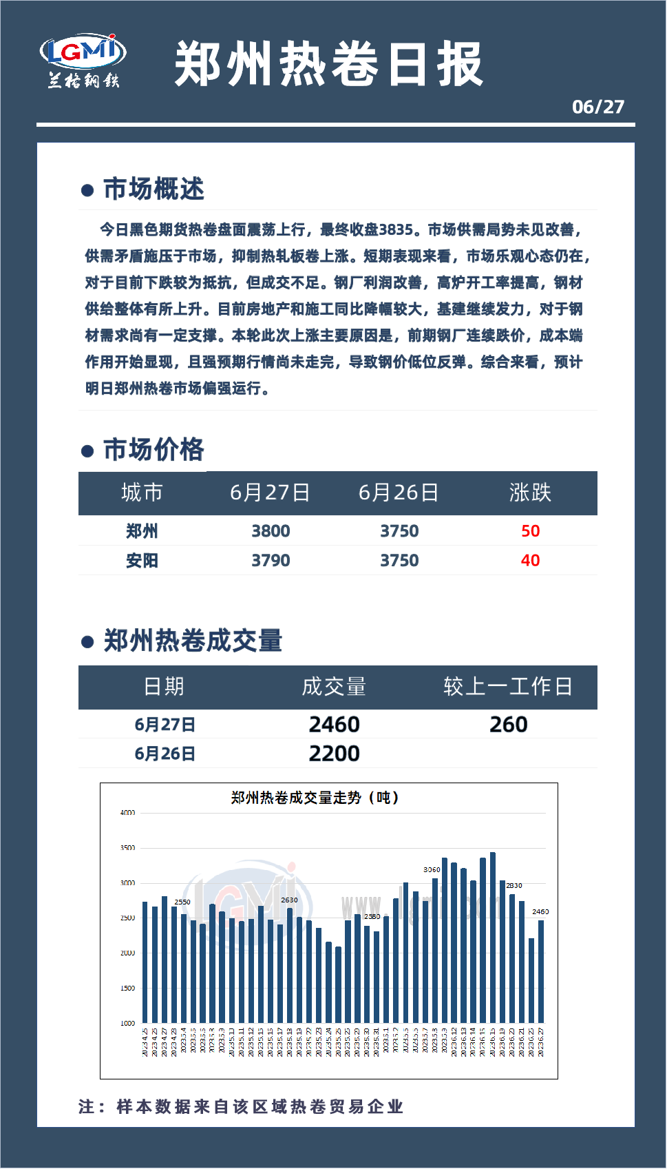 - 6月27日安阳市场热卷样本大户出货量2023/6/27