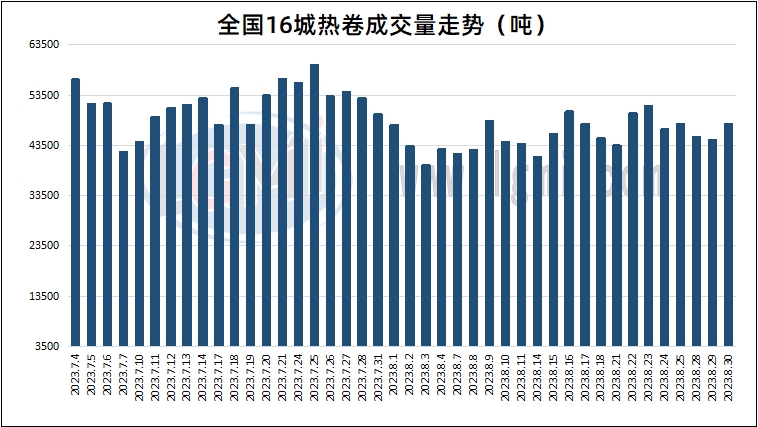 8月30日全国16个重点城市热轧板卷样本大户出货量