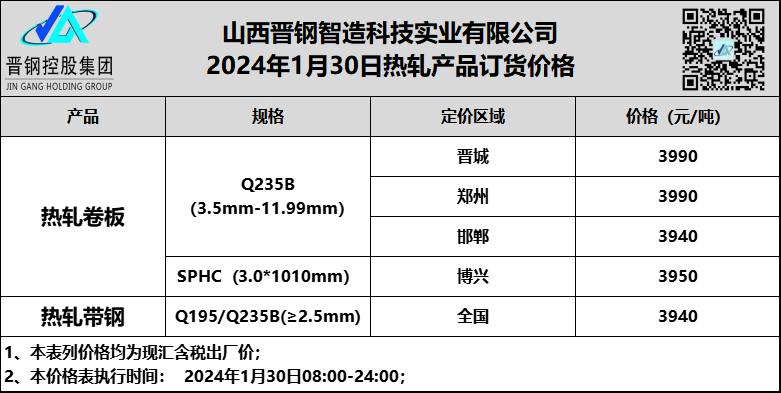 • 1月30日山西晋钢冷系 涂镀产品订货价格